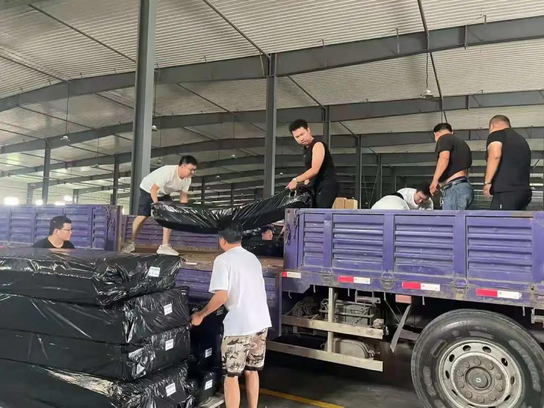 7月24日,5000條防潮墊采購完畢,準備裝車。洛陽青峰全體工作人員一呼百應,僅僅20分鐘所需人手就集結完畢。下午3點,黃董及崔總帶領青峰員工在孟津集合,將救援物資裝車。