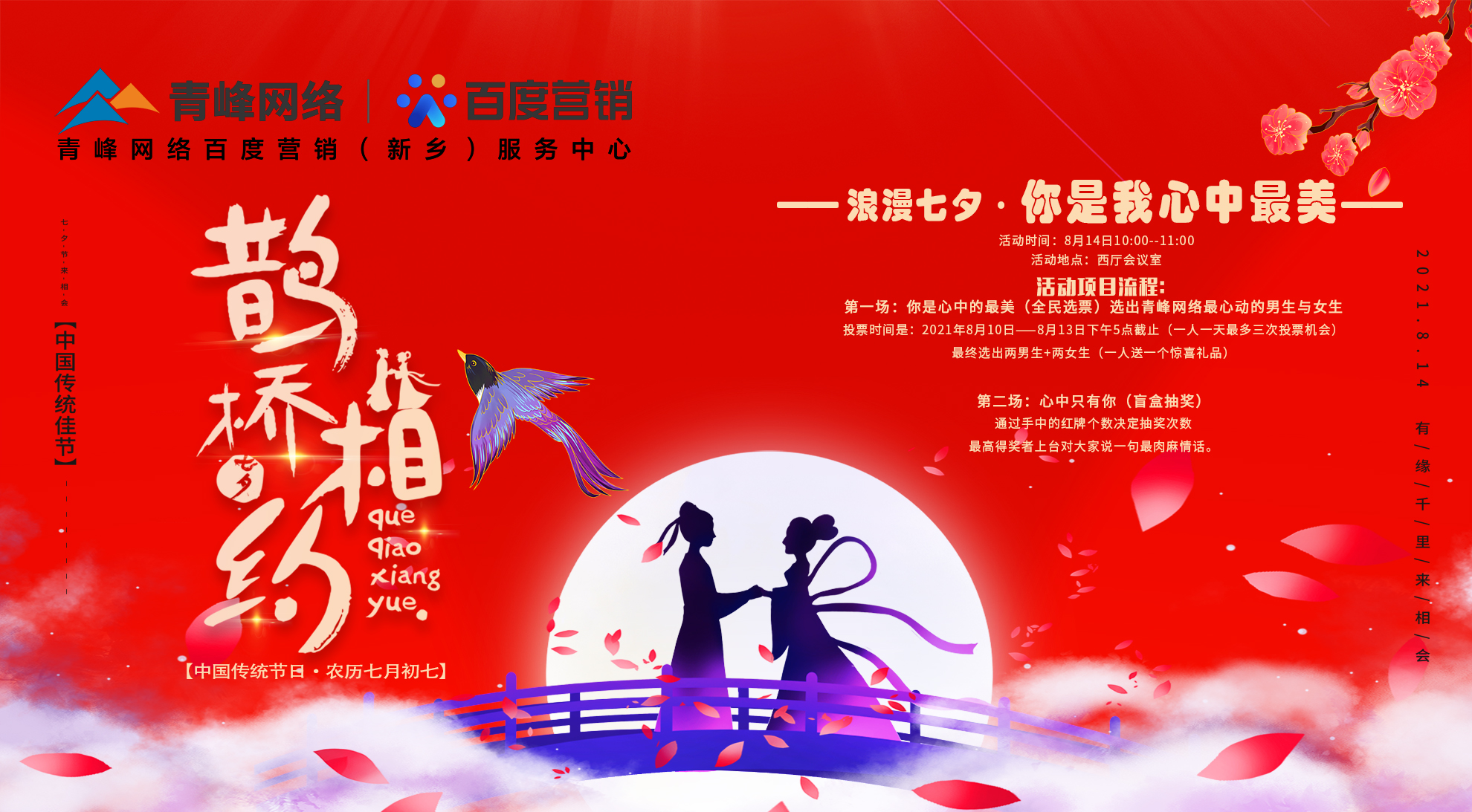七夕佳節到來之際,青峰網絡舉辦“你是我心中最美”的投票征集活動,人人參與,人人有機會。