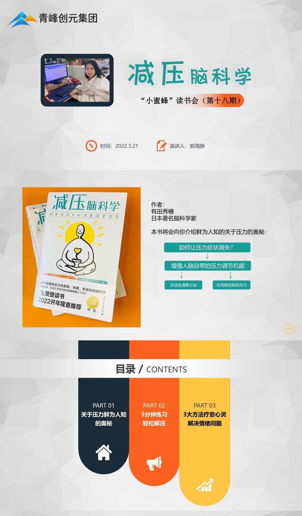 【青峰創元集團】“小蜜蜂”讀書會第十八期:《減壓腦科學》---郭海靜分享