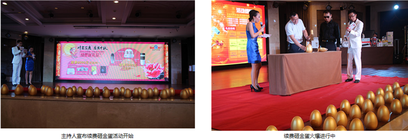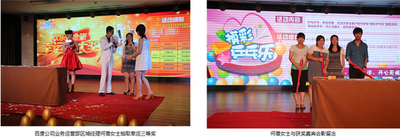 由于市場部和百度客服部的精心策劃和認(rèn)真籌備,本次答謝會在各環(huán)節(jié)上相比以往都做了創(chuàng)新和改進(jìn),“摸彩乒乓樂”活動環(huán)節(jié)抓住了客戶心理,解決了客戶中途離場的難題,客戶中途離場率創(chuàng)造歷史新低。續(xù)費(fèi)砸金蛋送禮品環(huán)節(jié),更是把本次會議從一個高潮推向另一個高潮。客服部的同事們,就宴會環(huán)節(jié)的節(jié)目也做了精心的準(zhǔn)備,使客戶在晚宴時,既嘗到了菜肴的美味,又對精彩的節(jié)目表演贊嘆不已。