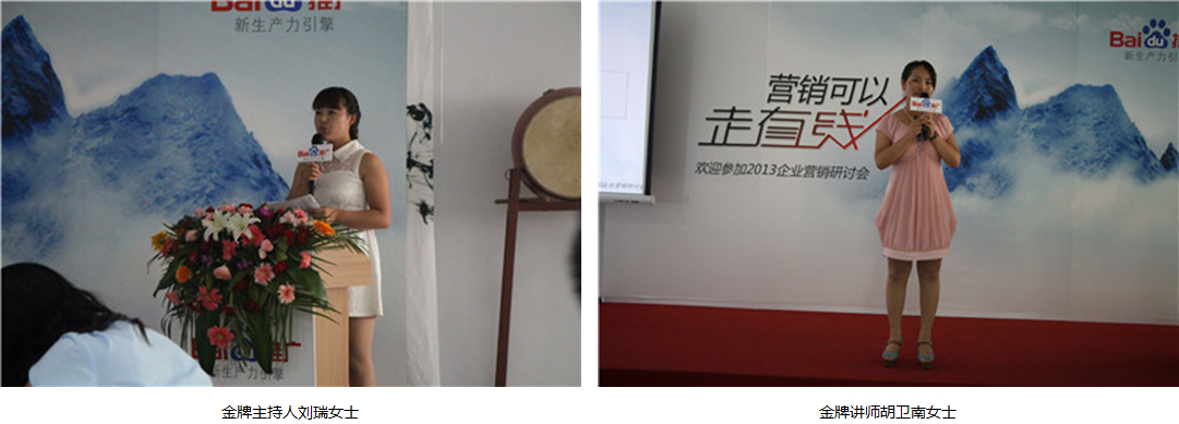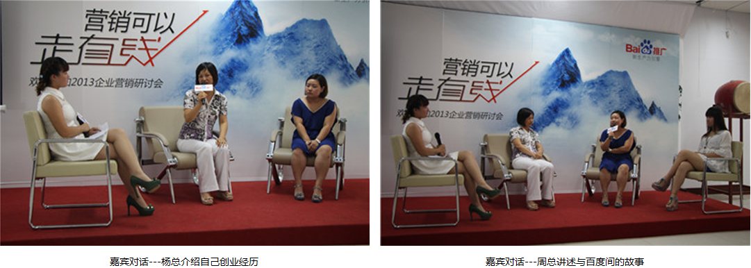 下半場嘉賓對話環節,是本次會議的一大亮點,會議特別邀請了新鄉本土的兩家百度推廣老客戶-新鄉宇仁化學有限公司楊總、新鄉市通用電機有限公司周總現身說法,她們用最樸實的語言講述著與百度推廣的故事,當講到百度每年給他們帶來的收益時,臉上的笑容都是溢于言表。通過她們的講述,使參加本次會議的新客戶對百度推廣有了更深的了解,也更加堅定了他們與百度合作,加入百度推廣的信心。