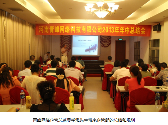 7月12日,青峰網(wǎng)絡2013年年中總結會在濟源召開。青峰網(wǎng)絡、新鄉(xiāng)人才網(wǎng)、河南聚創(chuàng)、青峰咨詢、新鄉(xiāng)汽車網(wǎng)的同事,在會議中積極分享自己上半年的工作總結,以及下半年的工作規(guī)劃。