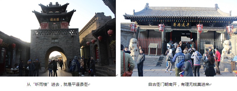 經(jīng)過(guò)六個(gè)多小時(shí)的車程,我們抵達(dá)了中國(guó)四大古城之一的平遙古城。平遙古城位于山西中部,是一座具有2700多年歷史的文化名城,與同為第二批國(guó)家歷史文化名城的四川閬中、云南麗江、安徽歙縣并稱為“保存完好的四大古城”,也是目前我國(guó)以整座古城申報(bào)世界文化遺產(chǎn)獲得成功的古縣城。鳥瞰平遙古城,形同一只欲行未動(dòng)的烏龜,“龜”頭南尾北,東西四門比擬為龜之四足,民間故有“龜城”之說(shuō)。南門之外,古有中都河水蜿蜒而過(guò),從而引發(fā)了古代文人“龜前戲水,山水朝陽(yáng),城之攸建,以此為用”的感慨。烏龜是吉祥、長(zhǎng)壽的象征,“龜城”之說(shuō)源于古人對(duì)“四靈”的崇拜,“龜城”寓意固著金湯,長(zhǎng)治久安。走進(jìn)古城,一股厚重的歷史氣息撲面而來(lái)。看著高達(dá)12米的城墻,看著結(jié)構(gòu)整齊的磚石結(jié)構(gòu),不得不讓人驚嘆古代勞動(dòng)人民的血汗與智慧,在生產(chǎn)工具落后的情況下,建造起如此雄偉的防圍,來(lái)保護(hù)自己的家園。西風(fēng)烈烈中,城墻上的角臺(tái)、城樓在訴說(shuō)著當(dāng)年的廝殺血拼,此時(shí),忽然寒風(fēng)四起,雪粒紛飛,令人不禁頓起滄桑悲涼之感。