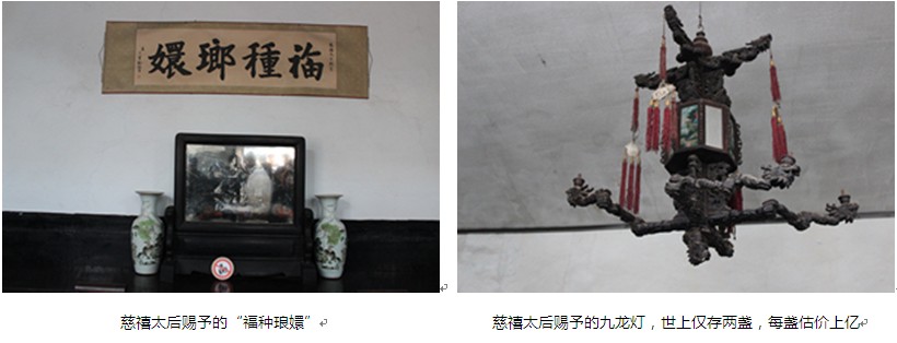 喬家大院是清代赫赫有名的商業(yè)金融資本家喬致庸的宅院,原名“在中堂”,大院為全封閉式的城堡式建筑群,建筑面積4175平方米,分6個(gè)大院,20個(gè)小院,313間房屋。外圍是封閉的磚墻,高10米有余,上層是女墻式的垛口,還有更樓,眺閣點(diǎn)綴其間,顯得氣勢(shì)宏偉,威嚴(yán)高大。大門坐西朝東,寓意“紫氣東來(lái)”,大門對(duì)面是磚雕百壽圖照壁。綜觀全院布局嚴(yán)謹(jǐn),設(shè)計(jì)精巧,俯視成“囍”字形,建筑考究,磚瓦磨合,精工細(xì)做,工藝精湛,充分顯示了我國(guó)勞動(dòng)人民高超的建筑工藝水平,素有“皇家有故宮,民宅看喬家”之說(shuō)。《大紅燈籠高高掛》、《喬家大院》、《昌晉源票號(hào)》、《趙四小姐與張學(xué)良》等40多部影視劇曾在此拍攝。據(jù)說(shuō)在八國(guó)聯(lián)軍攻占北京時(shí),慈禧太后被迫逃亡,在途經(jīng)山西時(shí),盤纏所剩無(wú)已。于是慈禧要求山西的晉商捐款,當(dāng)時(shí)著名的商業(yè)金融資本家喬致庸捐款數(shù)額最多,慈禧懿旨為其授匾,并且還送了兩個(gè)“九龍燈”,目前世上僅剩兩個(gè),每個(gè)估價(jià)均過(guò)億元。“福種嫏嬛”的意思就是喬家大院是神仙居住的地方。