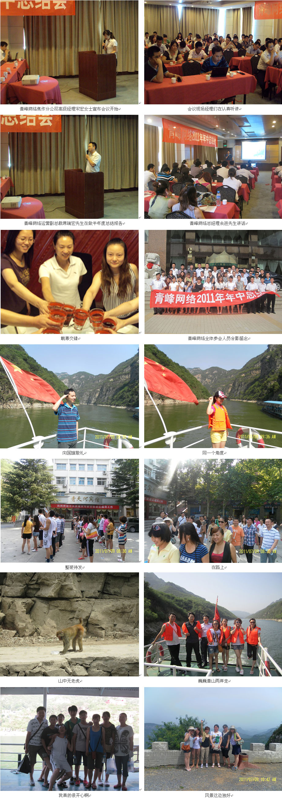 2011年7月8日,新鄉市青峰網絡科技有限公司2011年度年中總結會在焦作萬方金莎酒店隆重召開。會議由青峰網絡焦作分公司高級經理宋宏主持,公司 44位管理人員參加會議。