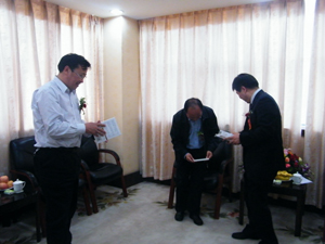 百度服務管理部任總監向新鄉市副市長楊書廷贈送《壹百度》