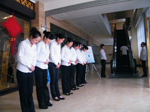 迎賓禮貌的歡迎各界嘉賓到來