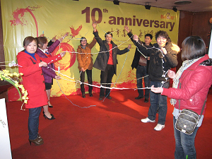 恭迎嘉賓 繁忙的簽到區 主持人致開場詞 嘉賓簽名留念 主講人郭凡先生做精彩主題演講 客服表演優美舞蹈 小品“開鎖” 優秀客戶帶來街舞表演 游戲“聲名遠揚” 游戲“圓聚” 嘉賓代表發言 客服齊唱“明天會更好” 會議最后在一片歡聲笑語中結束,通過這次會議,將客戶與百度的距離拉的更近了,更是增強了客戶對百度信任。面對已經到來的2010年,百度仍將不負眾望,努力回報廣大客戶的支持與信任。相信眾多的中小企業也會繼續把百度當做堅定的長久的合作伙伴,在新的一年里和百度一起蓄勢待發,再創輝煌!